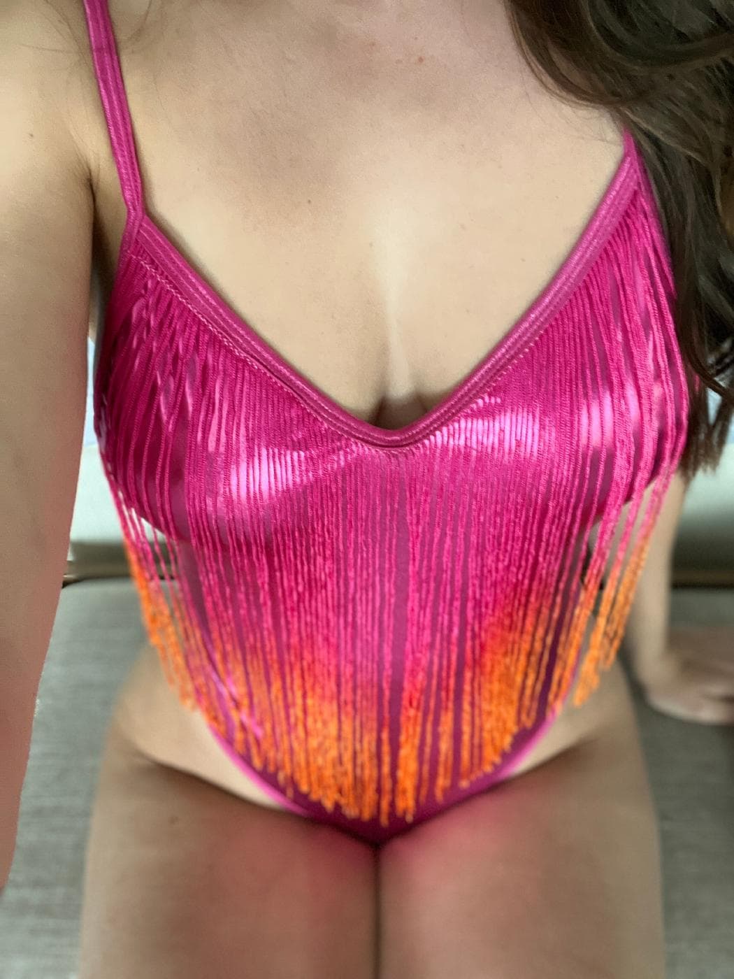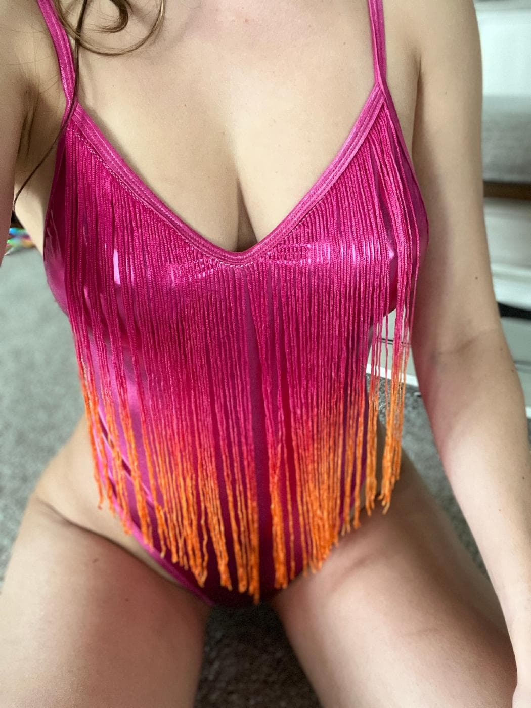Just slipped into my new shiny swimsuit. Can you handle how it looks dripping wet on me? ๐ฆ๐
